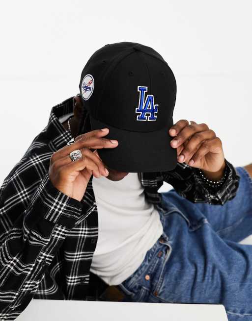 47 Brand – LA Dodgers – Baseball-Kappe in Schwarz mit Logo und Aufnäher mit Stickerei