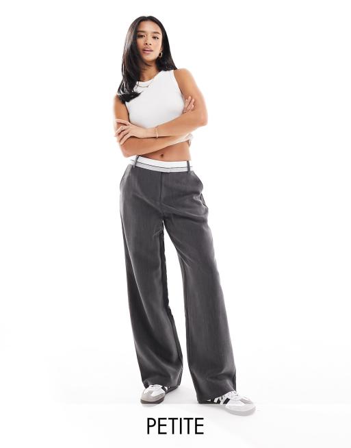 4th & Reckless Petite – Exklusiv – Elegante, gerade geschnittene Hose in Dunkelgrau mit kontrastierendem Bund