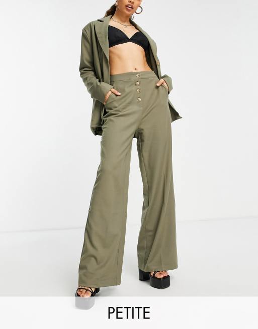 4th & Reckless Petite – Hose in Olivgrün mit weitem Bein und Knopfdetail, Kombiteil