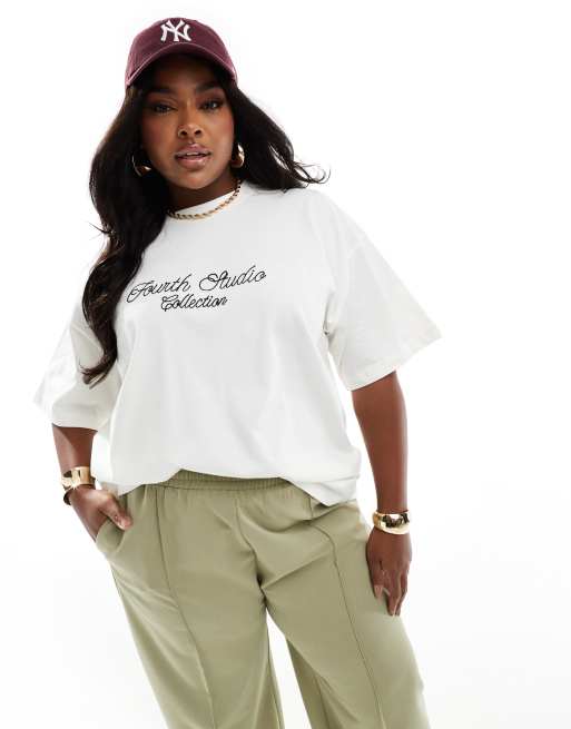 4th & Reckless Plus – Exklusives T-Shirt in Cremeweiß mit gesticktem „Fourth Studio“-Logo