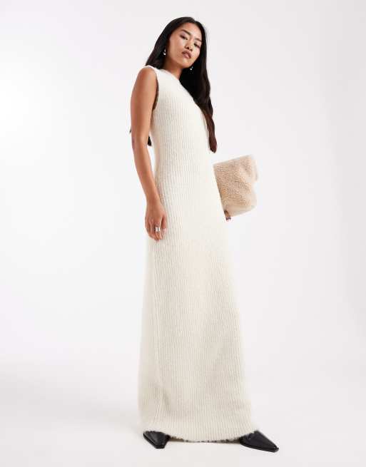 4th & Reckless – Ärmelloses, hochgeschlossenes Maxi-Pulloverkleid in Creme aus weichem Strick mit Wollhaptik