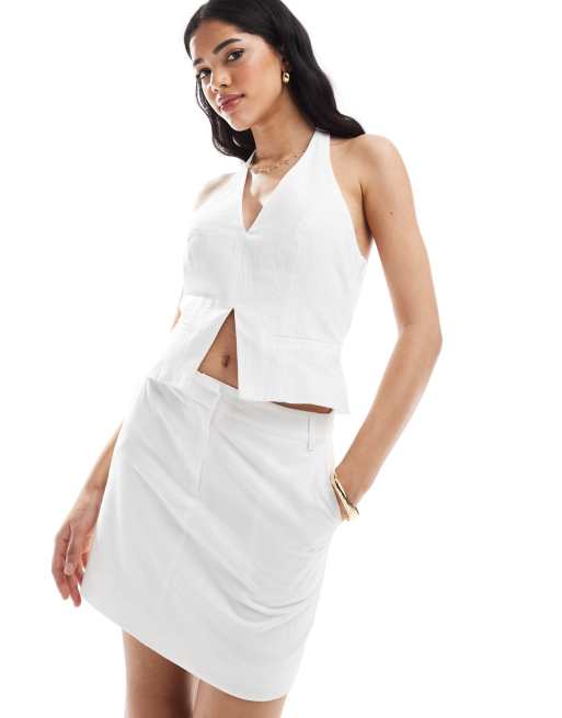 4th & Reckless – Baumwoll-Minirock in Weiß mit Leinenoptik, Kombiteil