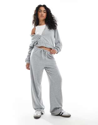 4th & Reckless – Jogginghose aus Frottee in Grau meliert mit Tunnelzug und weitem Bein, Kombiteil