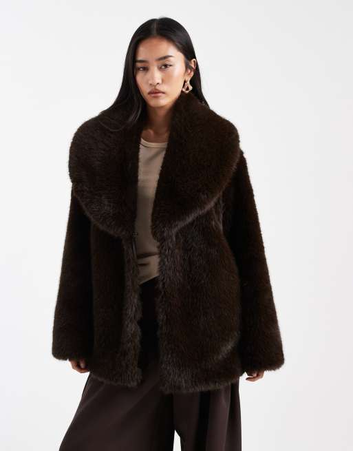 4th & Reckless – Kunstpelzjacke in Schokoladenbraun mit Oversize-Kragen