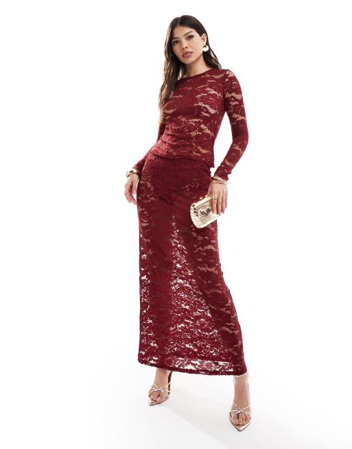 4th & Reckless – Langärmliges Oberteil aus Spitze in Burgunderrot, Kombiteil
