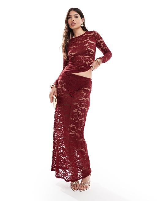 4th & Reckless – Maxirock aus Spitze in Burgunderrot, Kombiteil