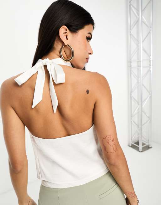 4th & Reckless – Oberteil in Weiß aus Satin mit Neckholder und Wasserfalldetail