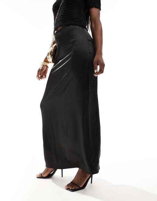 4th & Reckless – Satin-Maxirock in Schwarz mit Schlitz auf der Rückseite