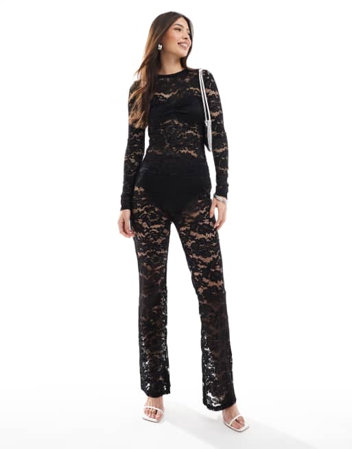 4th & Reckless – Set aus Spitze, mit langärmligem Oberteil und Schlaghose