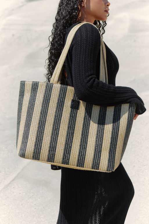 4th & Reckless x Loz Vassallo – Strandtasche im Stroh-Look in Beige und Schwarz