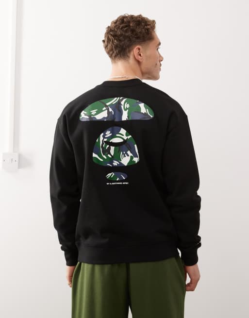 AAPE by A BATHING APE – Basic-Sweatshirt in Schwarz mit Logo und Military-Muster am Rücken
