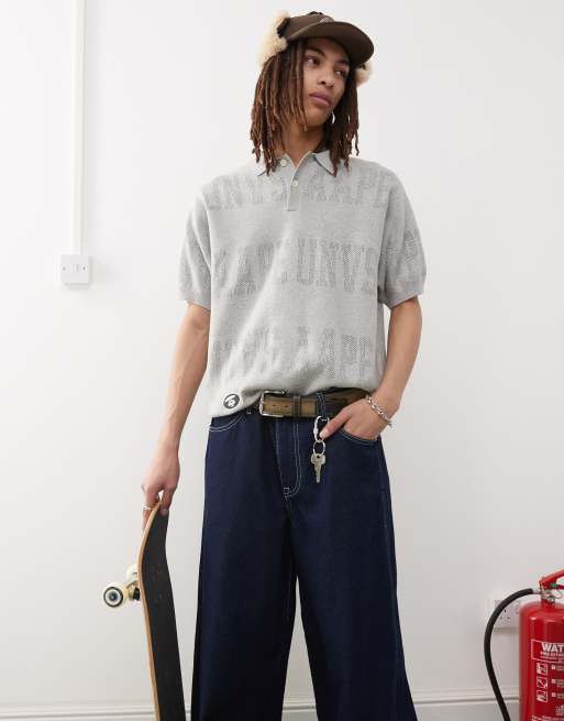AAPE BY A BATHING APE – Gestricktes Polohemd in Hellgrau mit Monogramm-Logo