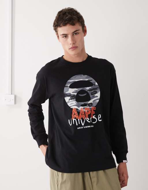 AAPE BY A BATHING APE® – Langärmliges, kastiges T-Shirt in Schwarz mit Brustprint