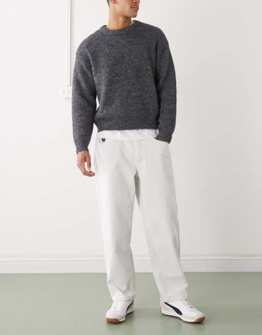AAPE BY A BATHING APE – Loose-Fit-Jeans in Wollweiß mit Stickerei am Bein