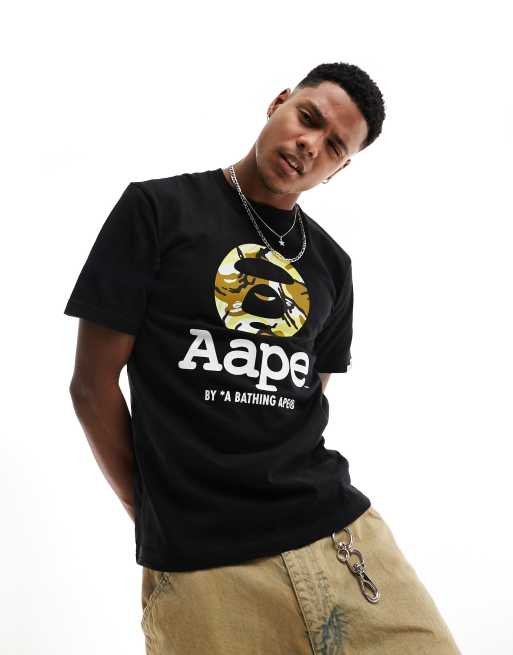 Aape By A Bathing Ape – Moon Face – T-Shirt in Schwarz mit Camouflage Logo