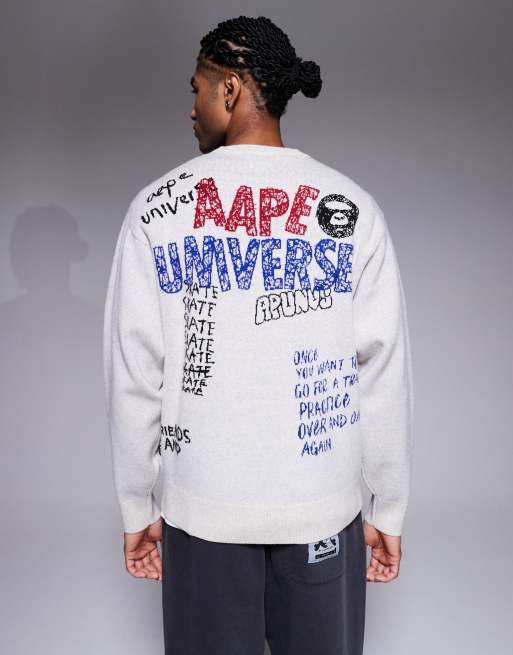 AAPE BY A BATHING APE® – Strickpullover in Wollweiß mit Kritzel-Print