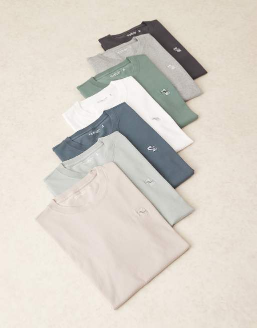Abercrombie & Fitch – 7er-Pack T-Shirts in neutralen Farben mit Markenlogo