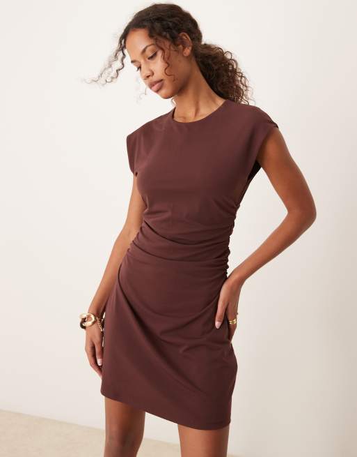 Abercrombie & Fitch – Ärmelloses Minikleid in Schokoladenbraun mit seitlichen Raffungen