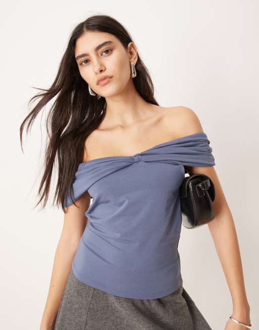 Abercrombie & Fitch – Asymmetrisches, schulterfreies Oberteil in Indigoblau mit Zierknoten