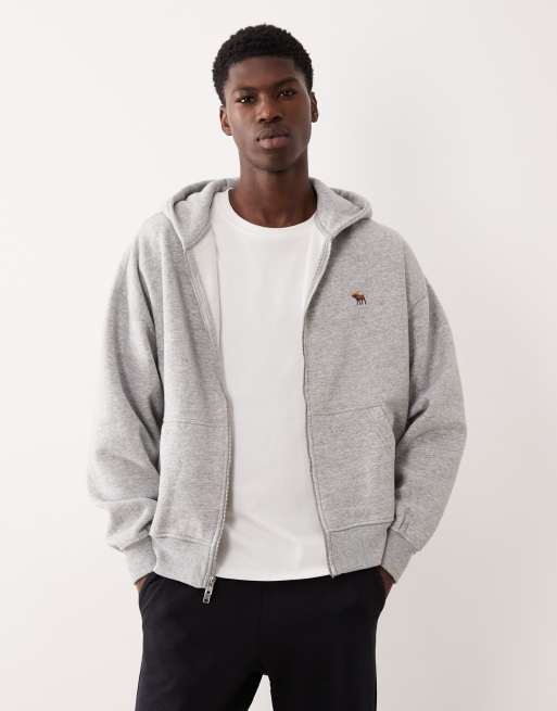Abercrombie & Fitch – Basic-Kapuzenjacke in Grau mit Reißverschluss