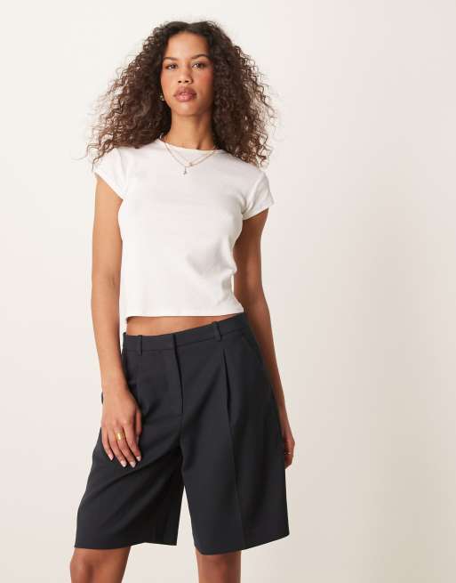 Abercrombie & Fitch – Bermudashorts in Schwarz mit mittelhohem Bund