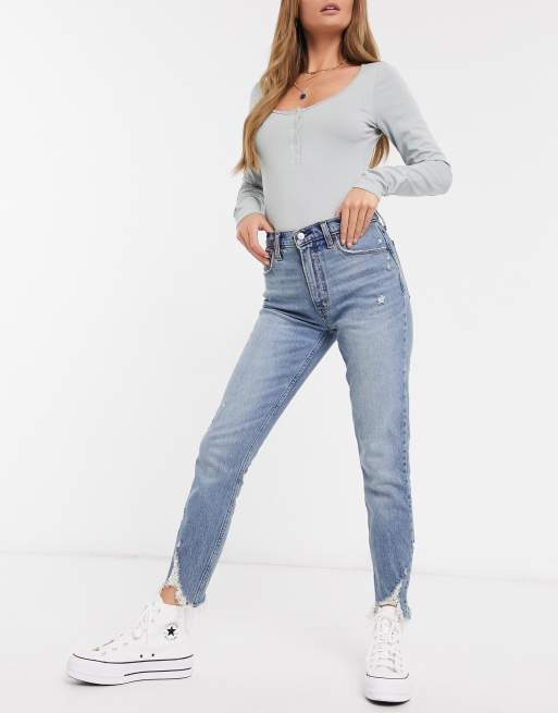 Abercrombie & Fitch – Jeans in engem Schnitt in mittlerer Waschung mit ausgefranstem Saum