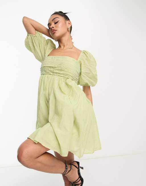 Abercrombie & Fitch – Kleid aus Popeline in Grün mit Puffärmeln