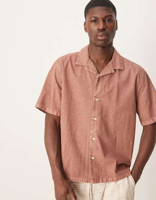 Abercrombie & Fitch – Kurzärmliges Leinenhemd in Braun