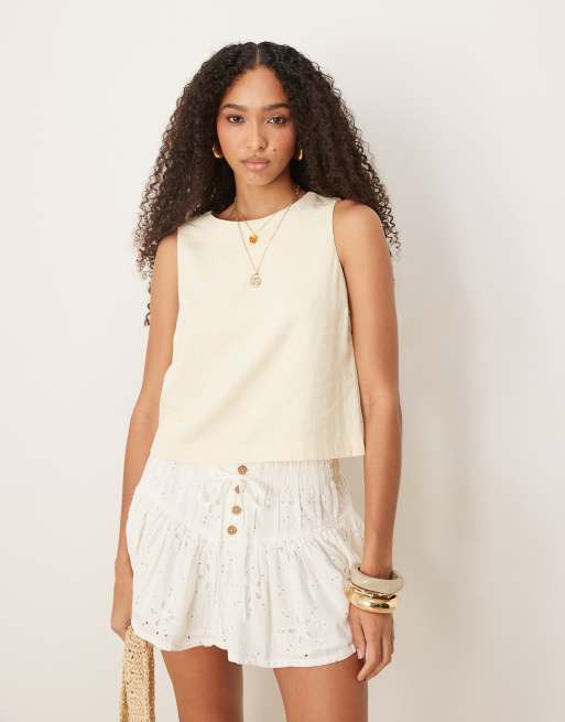 Abercrombie & Fitch – Leinen-Oberteil in Gelb mit gebundener Rückseite
