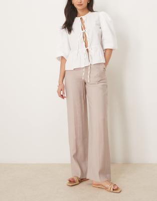 Abercrombie & Fitch – Loose-Fit-Hose in Beige mit hohem Bund