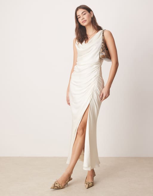 Abercrombie & Fitch – Maxikleid in Weiß mit Drapierung und Wasserfallausschnitt