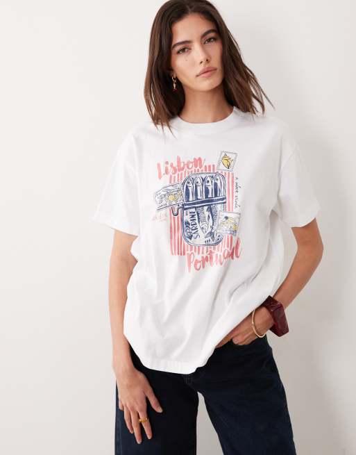 Abercrombie & Fitch – Oversize-T-Shirt in Weiß mit „Lisbon“-Grafikprint