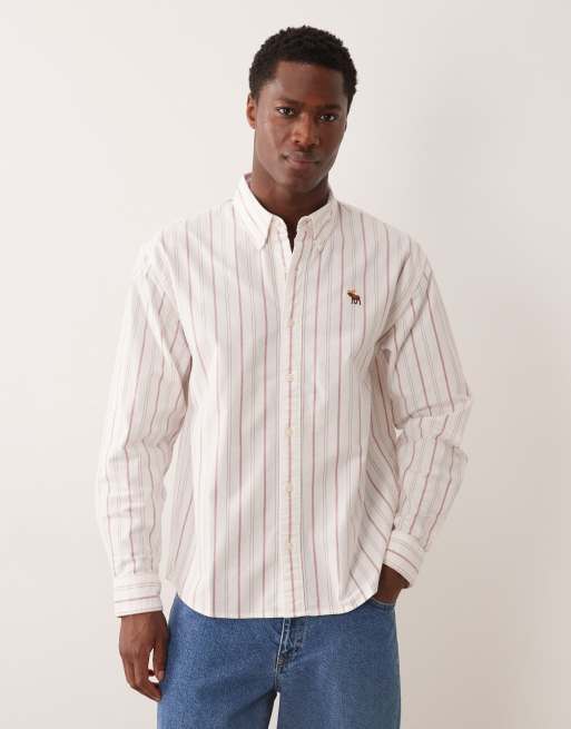 Abercrombie & Fitch – Oxford-Hemd in Weiß gestreift mit Markenlogo
