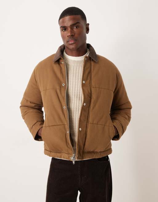 Abercrombie & Fitch – Pufferjacke aus Twill in verwaschenem Braun