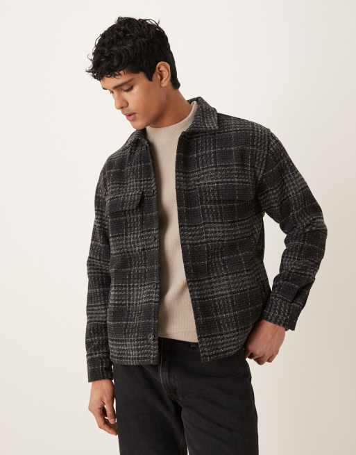 Abercrombie & Fitch – Relaxed-Fit-Hemdjacke aus Bouclé in Schwarz kariert