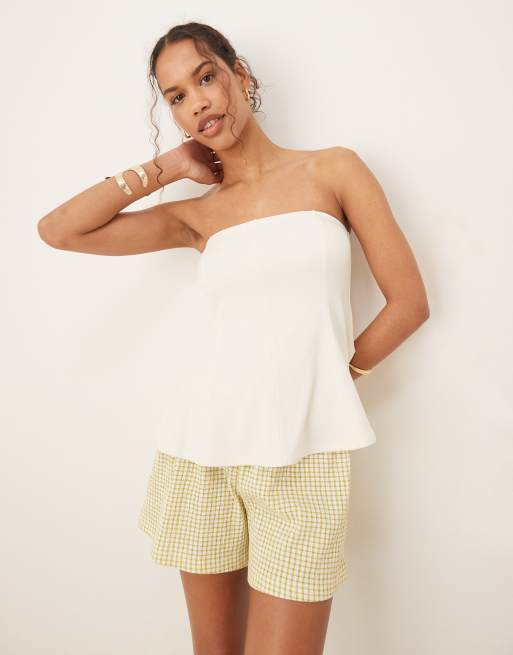 Abercrombie & Fitch – Schlauchtop in Weiß mit Schößchensaum