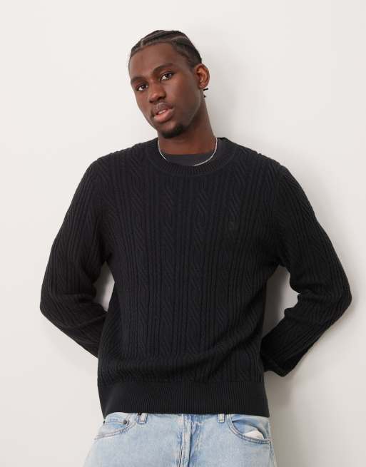 Abercrombie & Fitch – Strickpullover aus schwarzer Merinowolle mit Zopfmuster