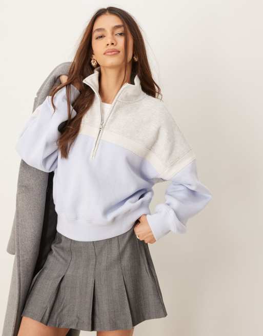 Abercrombie & Fitch – Sweat-Top in Creme mit halbem Reißverschluss
