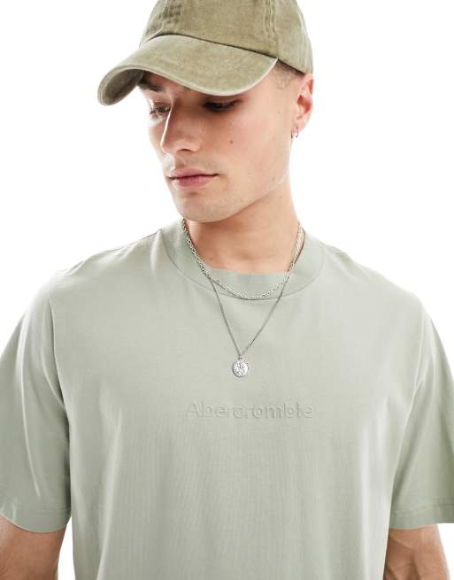 Abercrombie & Fitch – T-Shirt in Hellgrün mit mittiger Logo-Prägung