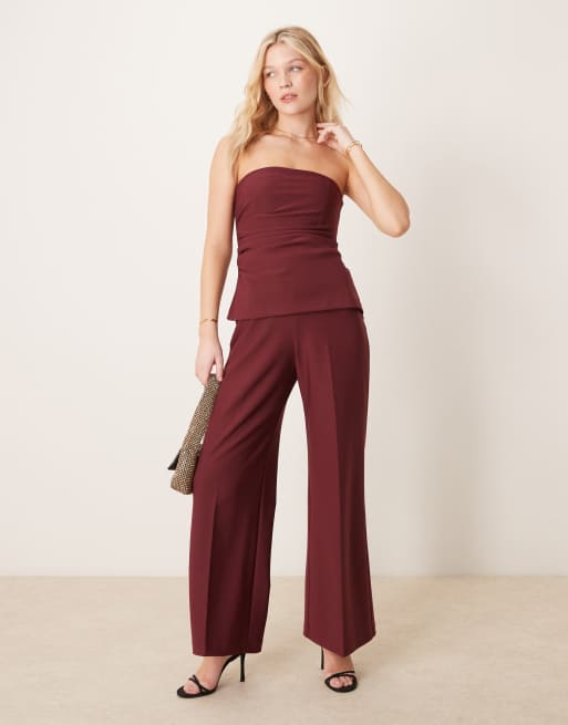 Abercrombie & Fitch – Trägerloser Longline-Jumpsuit mit Samt-Details in Burgunderrot