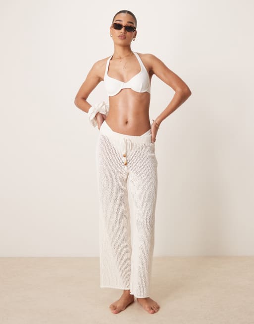 Abercrombie & Fitch – Transparente, gestrickte Badehose in Weiß