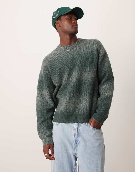 Abercrombie & Fitch – Warmer Oversize-Strickpullover in Grün mit Space-Dye-Muster