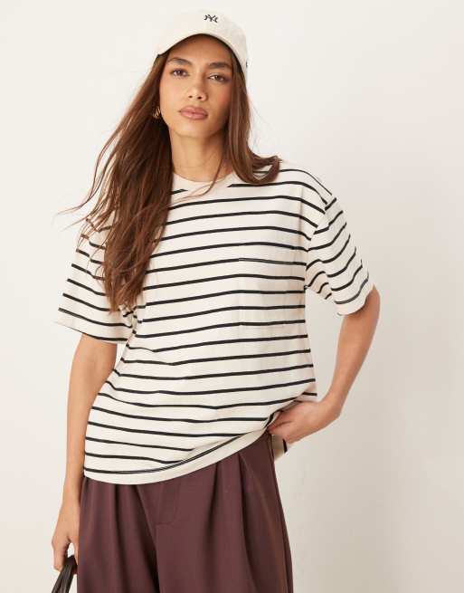 Abercrombie & Fitch – Weiß und marineblau gestreiftes, kastiges T-Shirt mit Tasche