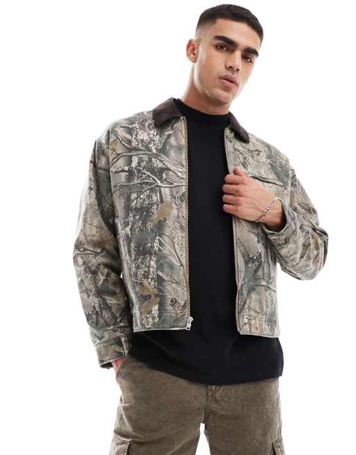 Abercrombie & Fitch – Workwear – Kurze Jacke mit mehrfarbigem Camouflage-Print und Reißverschluss vorne