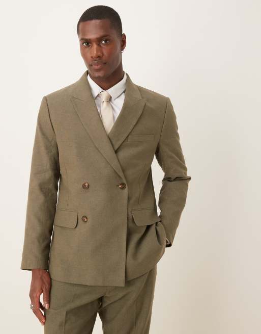 Abercrombie & Fitch – Zweireihiges Leinen-Anzugsakko in Olivgrün, Kombiteil