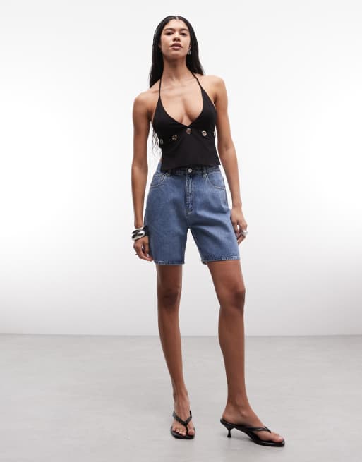 Abrand – Jeansshorts in mittelblauer Waschung mit hohem Bund
