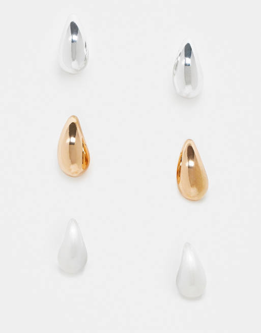 Accessorize – 3er-Pack tropfenförmige Mini-Ohrringe in Gold-, Silber- und Perlmuttoptik