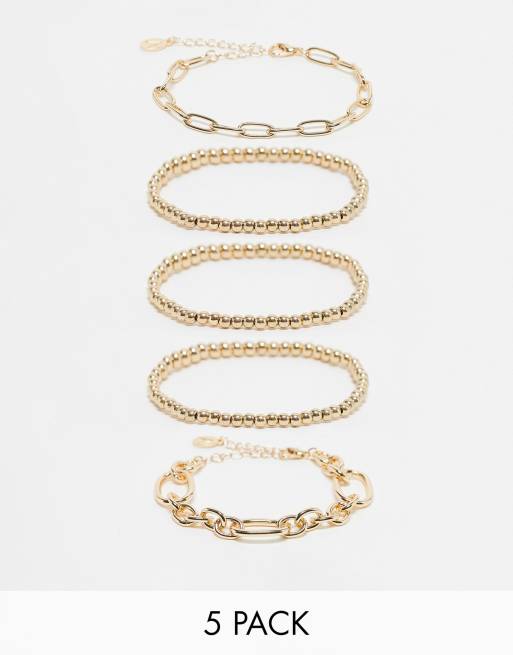 Accessorize – 5er-Pack goldfarbene Kettenarmbänder