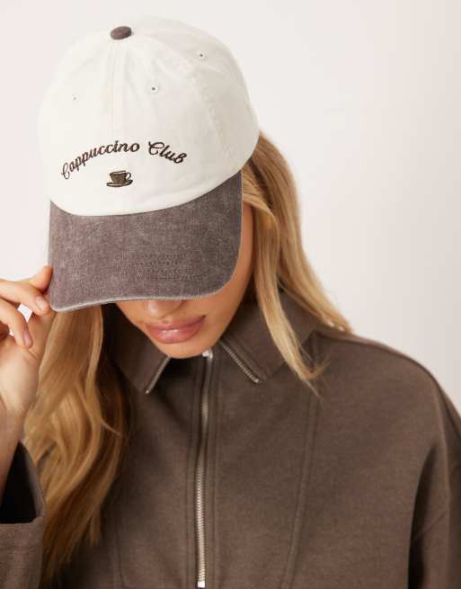 Accessorize – Baseballkappe in Creme und Braun mit „Cappuccino Club“-Schriftzug