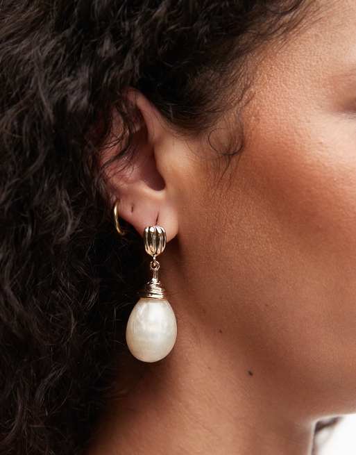 Accessorize – Breite, goldfarbene Kunstharz-Hängeohrringe mit Mondstein-Anhängern